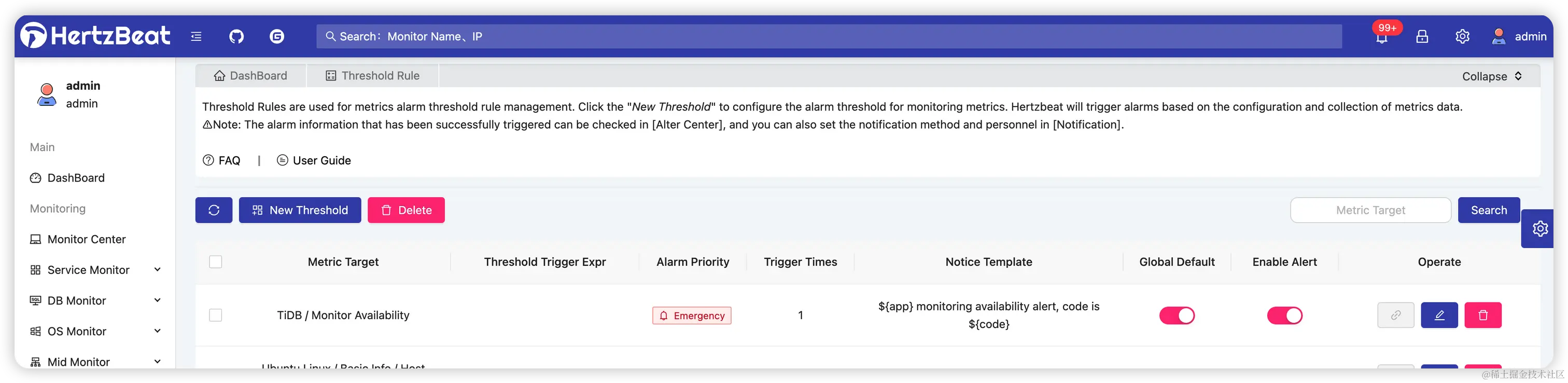 HertzBeat 赫兹跳动 是一个拥有强大自定义监控能力,高性能集群,无需 Agent 的开源实时监控告警系统。
