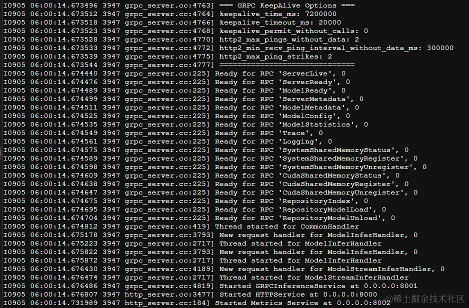 启动成功 http端口 8000 grpc端口8001 测量端口8002