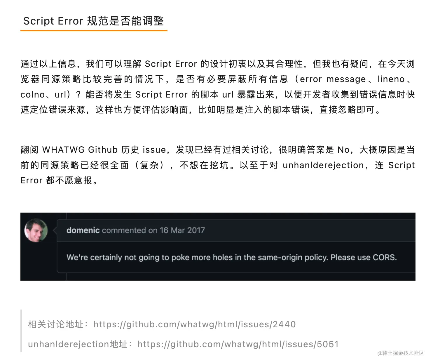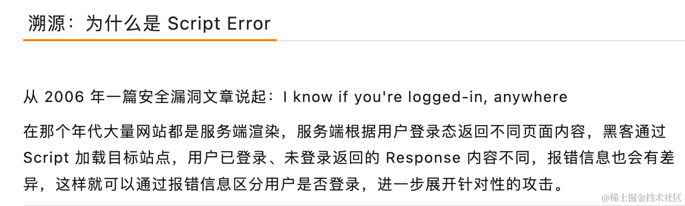 跨域脚本就为 true,后面附带了一句极为简单的解释:“会泄漏私有信息”。(原文见此)