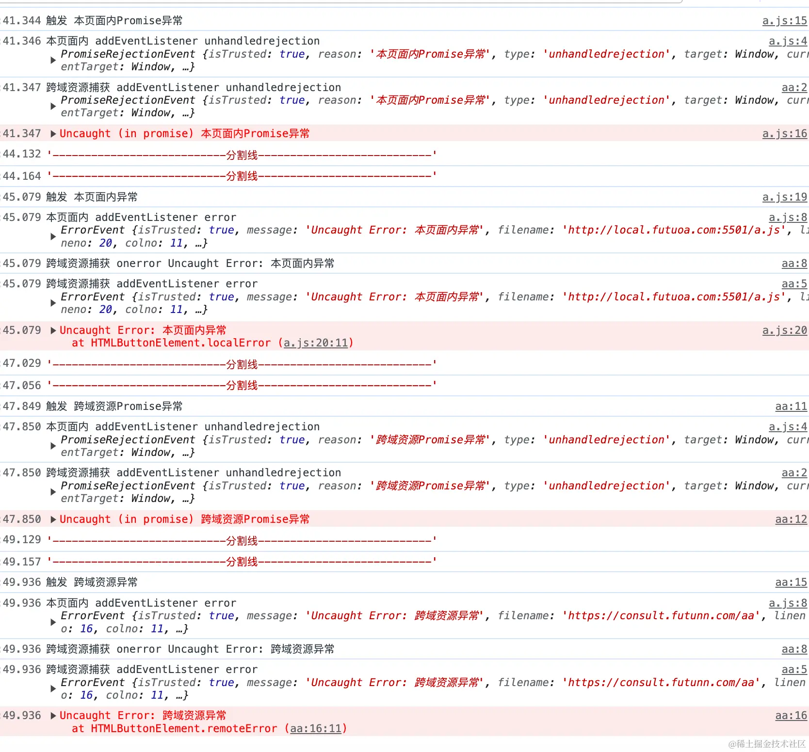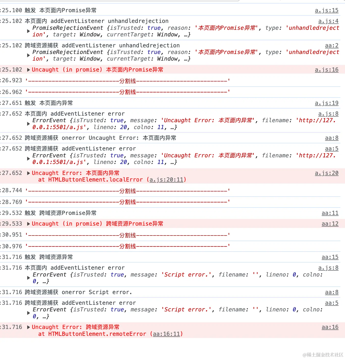 以上可以解释普通异常为什么没有堆栈,至于 Promise 异常为什么不能捕获,还没有看懂。并且限于水平,未能调试该源码,不太好说这些没有错漏之处,颇为遗憾……