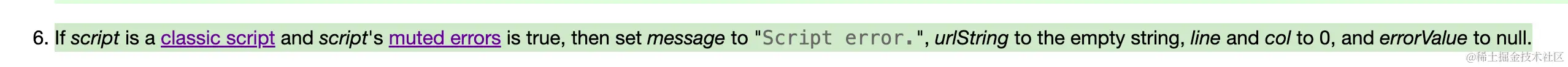 如果该脚本属于classic script且muted errors为 true,则普通异常就会抛出Script error.