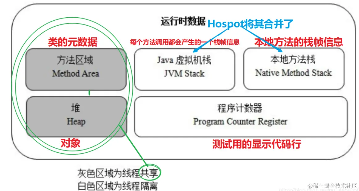 线程私有的:程序计数器、java虚拟机栈、本地方法栈