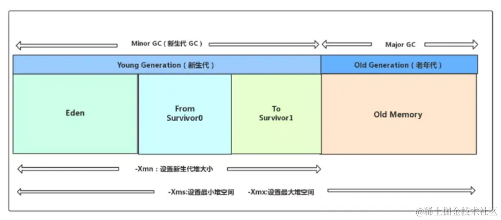 堆内存主要又分为了两个部分年轻代和年老代