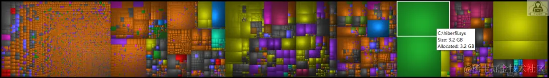 下面用方块模型很直观的体现到该磁盘下文件多或单文件大的情况图片