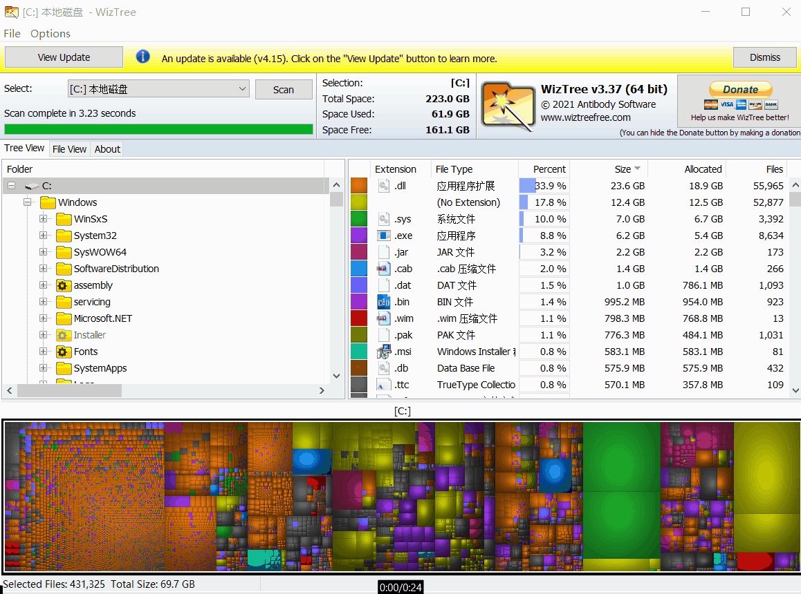 昨天分享了关于Windows微信的数据清理工具,不知道的可以点击查看 电脑C盘又满了?原来是微信在作怪!最牛的Windows微信清理工具来了! 后台有粉丝问有没有那种可以分析整个磁盘显示不同文件夹有多大的软件,那今天就以此为题,给大家推荐两款仙生一直有在用的磁盘分析软件@V公:不言仙声