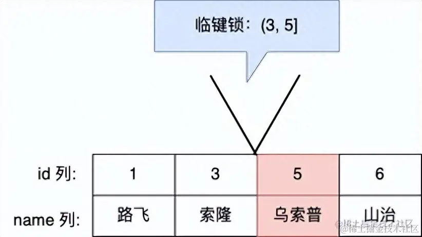 假设,表中有一个范围 id 为(3,5] 的 next-key lock,那么其他事务即不能插入 id = 4 记录,也不能修改 id = 5 这条记录。