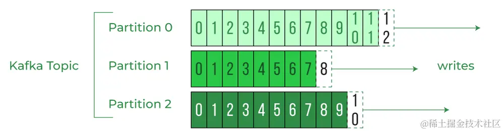 - partition 是 topic 的物理概念,每个 topic 可以细分为多个 partition,每个 partition 只属于单个 topic,并且包含不同的消息,partition 用于提高 topic 的存储和消费的性能和可扩展性,可以将 topic 分散在多个 broker 上,并支持多个 consumer 并行消费。