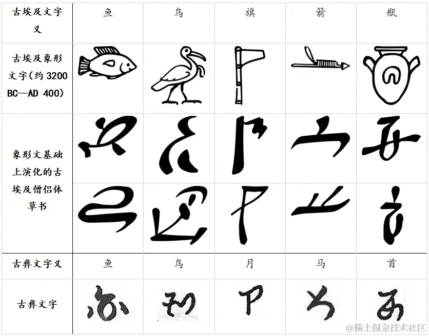 古彝文的起源距今至少数千年,是世界上最古老的文字之一。古彝文的外形与其他古文字中可能存在某些相似关联: