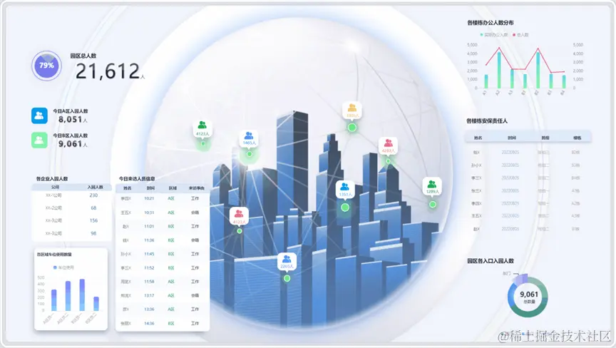图 3 华为云Astro Canvas大屏可视化的常用开发场景之一——园区统计
