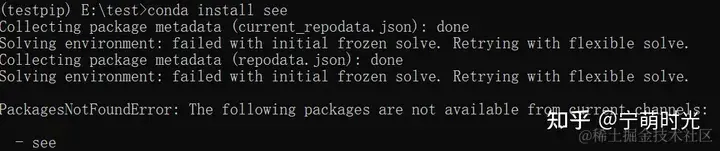提示:未安装成功,显示: ‘PackagesNotFoundError’,conda 中没有找到安装包,如下图所示: