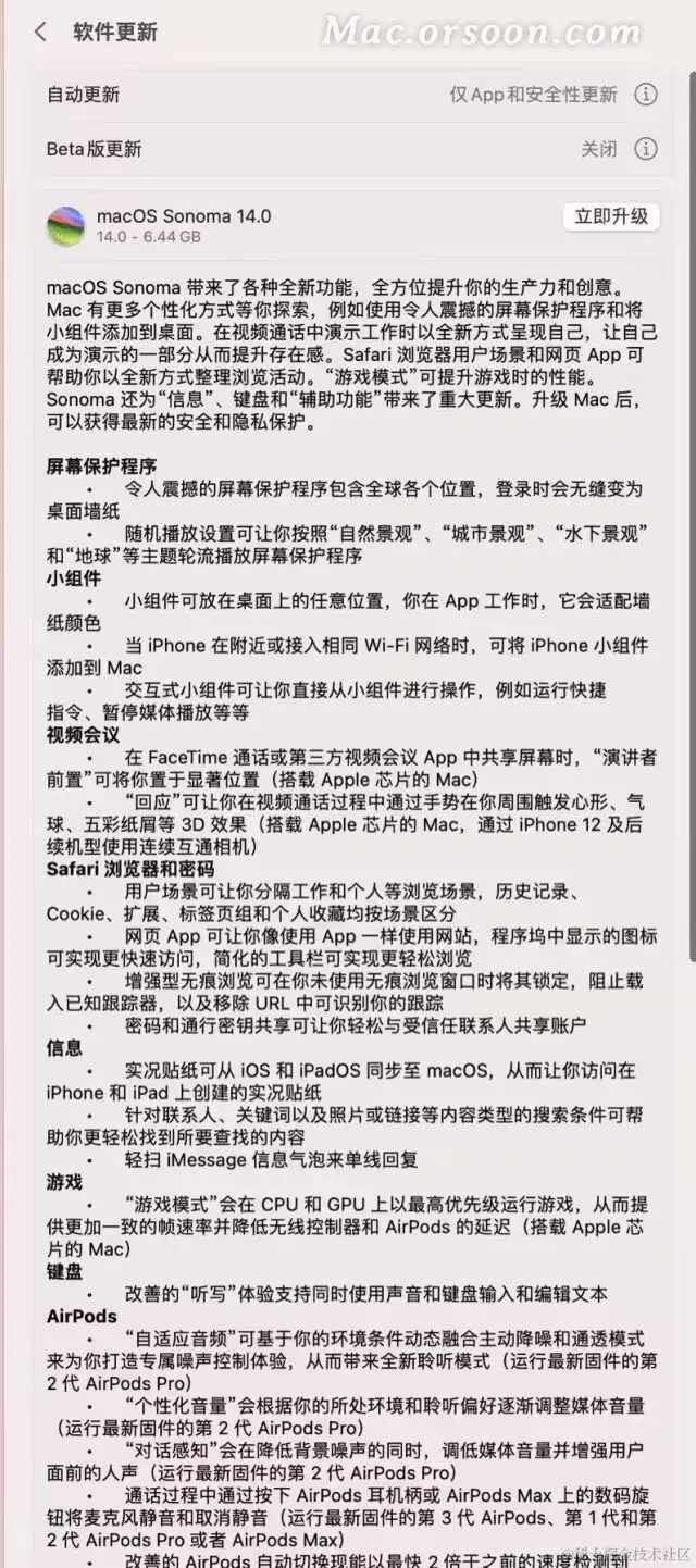 在 macOS Sonoma 中,桌面小组件解锁了个性化 Mac 与提升效率的全新方式,引入精美的新屏幕保护程序、视频会议和 Safari 浏览器的重大更新,以及进一步优化游戏体验。