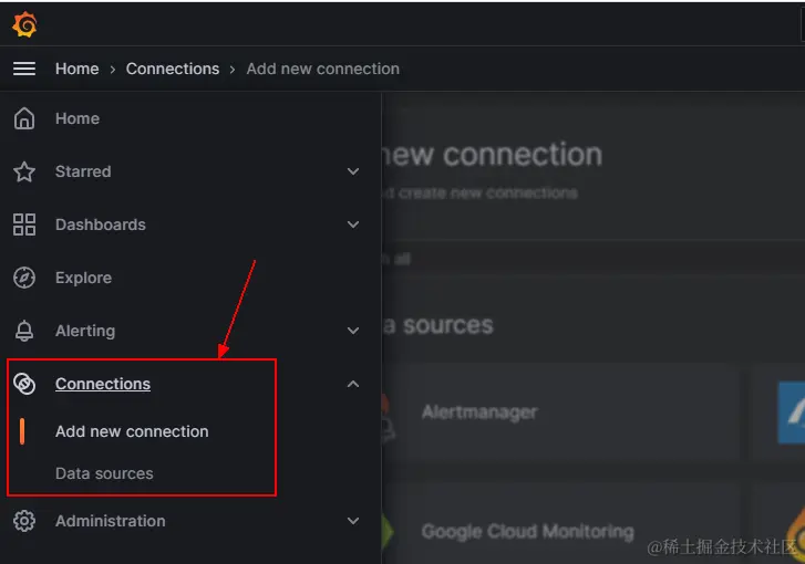 点击左侧菜单Connections