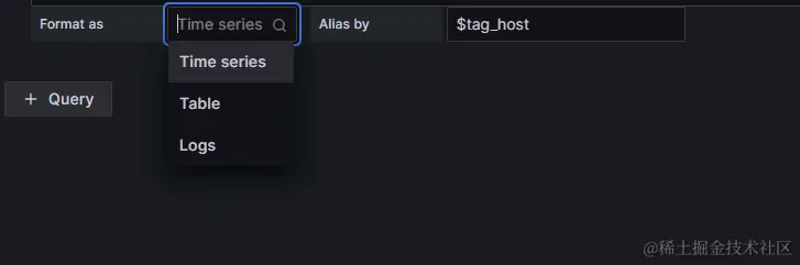 Format as:选择将数据格式化为 time series,table,log 等类型