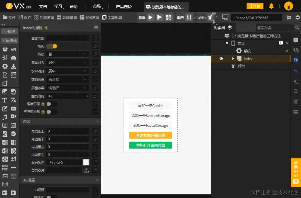 注意,当我们点击下载之后,它不是下载下来一个文件压缩包,而是直接进入iVX的IDE编辑界面。就是下图的样子,当然我们并不是要更改,而是一个测试,如何将这个web程序部署到本地。这是比较关键的,因为我们使用iVX它这个编辑器写好程序之后,我们总要部署的对吧。光能够导出源码还不够尽兴,能直接使用那更好。