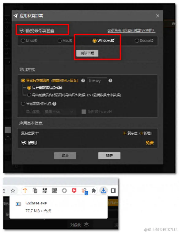 这个关键的程序就是windows版的服务器部署基座,注意你用的系统,你如果使用的是linux就选择linux的。我们点击下载之后,就会看到一个文件名为ivxbase的二进制程序被下载下来。
