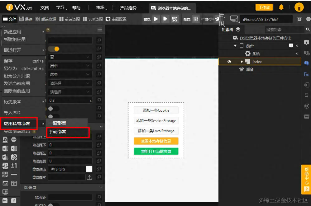 我们点击左上角的文件,然后点击应用私有部署,手动部署
