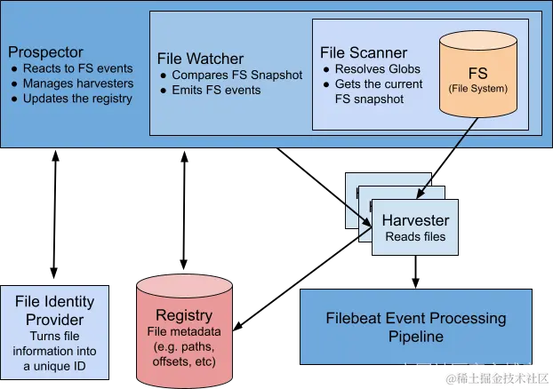 - 为了开始处理文件并管理其在注册表中的状态,Prospector 需要该文件的唯一 ID,该 ID 从输入的 file_identity 参数配置的文件身份提供程序获取。
