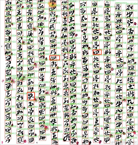 古彝文项目将根据上海大学古彝文研究员设计的四字节编码系统,引入合合信息智能文字识别技术,对异体字、变体字、误用字和混用字等进行标注、识别、比对,并由此建立起精确的彝文古籍电子数据库,识别标注效果如下所示: