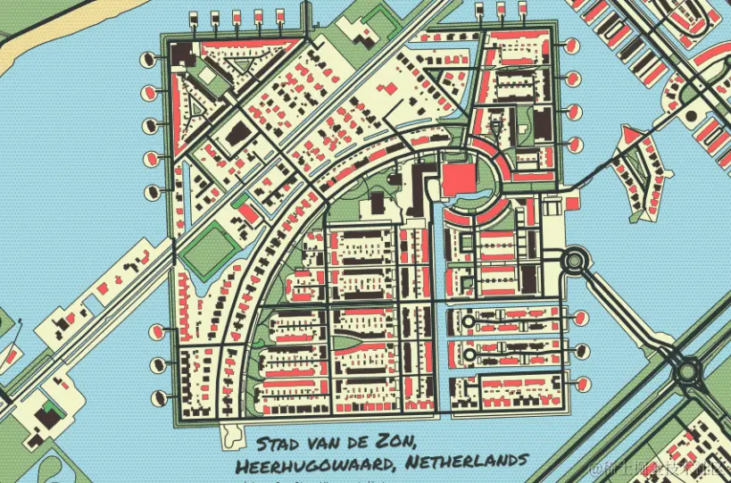 25、prettymaps:绘制好看的地图海报的 Python 库。该项目可以将 OpenStreetMap 的地图数据绘制成漂亮的地图海报,上手简单可自定义填充颜色。