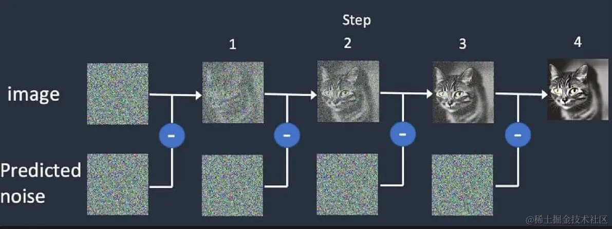 - 去噪过程不断的重复,最后会得到一张干净的图像