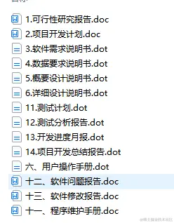 需求分析文档:该文档主要记录了用户需求和业务需求,描述了软件系统的预期功能和特性。在撰写需求分析文档时,需要尽可能详细地记录用户需求,以便为后续的设计和开发提供清晰的指导。 软件设计文档:该文档记录了软件系统的架构设计、模块划分、类图、流程图和数据模型等信息。通过软件设计文档,开发者可以更加清楚地了解系统的结构和功能,有助于提高开发效率和质量。 开发过程文档:该文档记录了开发过程中的关键步骤、技术选型、模块开发、集成测试和部署上线等信息。这份文档的撰写能够帮助开发者更好地协作和沟通,同时也可以为项目的质量控制提供依据。 运维管理文档:该文档主要涵盖了软件开发后的维护和管理,包括系统监控、漏洞扫描、系统安全等信息。这份文档的撰写有助于保障软件系统的稳定性和安全性,为用户提供更好的体验。 项目管理文档:该文档记录了项目管理的各个方面,如需求管理、进度管理、质量管理等。项目管理文档的撰写有助于项目管理者更好地规划和管理项目,提高项目成功率。 用户手册:该手册主要是为用户提供的,包含了系统概述、操作指南、问题解决等内容。通过用户手册,用户可以更好地了解和使用软件系统,提高工作效率。