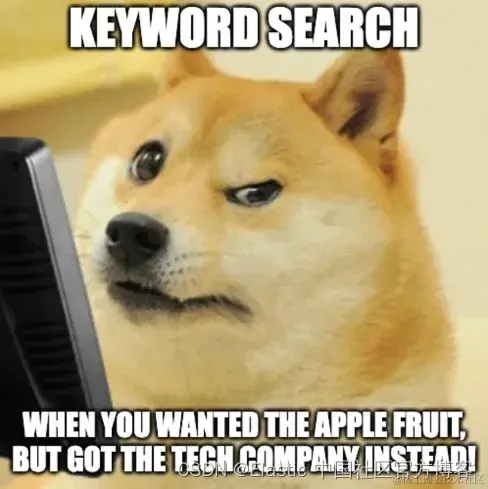 如上面的图片所示,如果我们通过 keyword 来进行搜索,我们想搜索的是 apple 水果,但是我们最终可能得到是关于 apple(苹果)公司的有关信息。其实它并不是我们想要的。