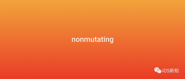 nonmutating 关键字也是直接标记在方法名前面的,用来向编译器保证,在这个方法中并不会改变任何自身的属性: