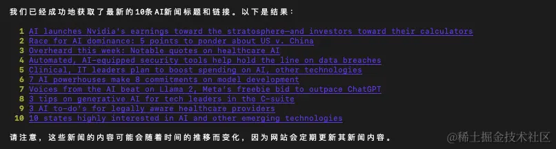 interpreter.chat("帮我获取全球AI人工智能领域最新的10条新闻")