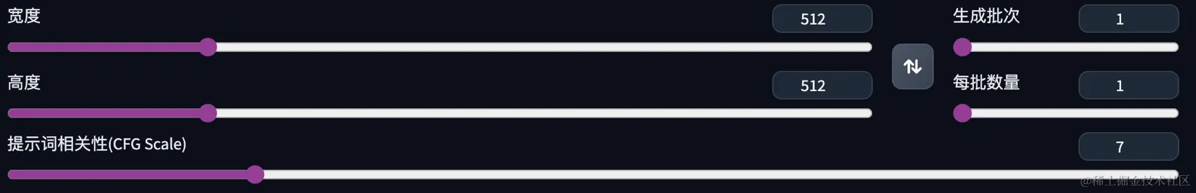 · 尺寸:一般会以64的倍数去递增,常用尺寸在前期确认seed之前会用到512*768,512*512,等