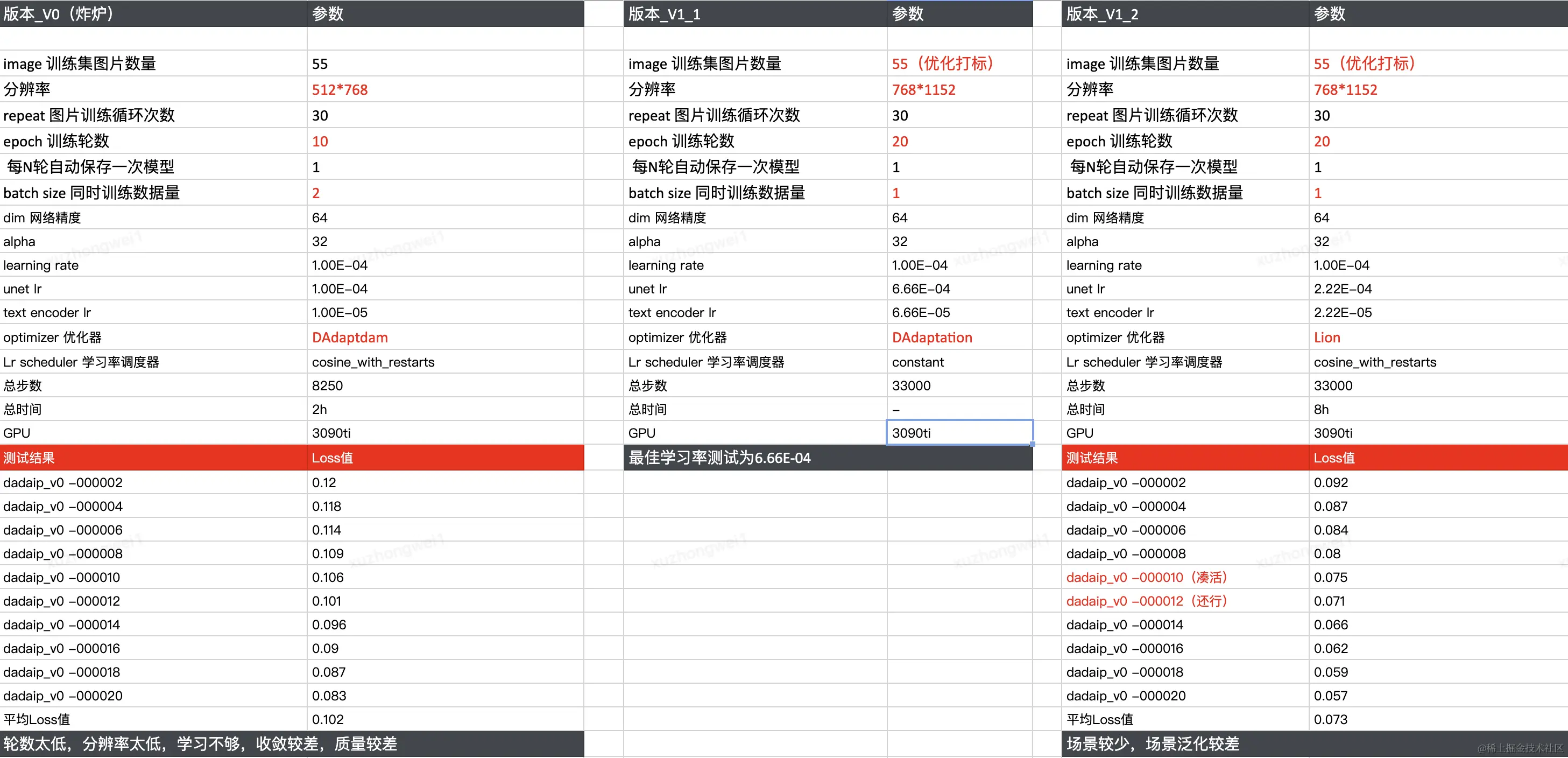 (注:这里的参数需要根据自身训练的IP或内容进行调优,存在是错成本,这里给大家科普一些基础)