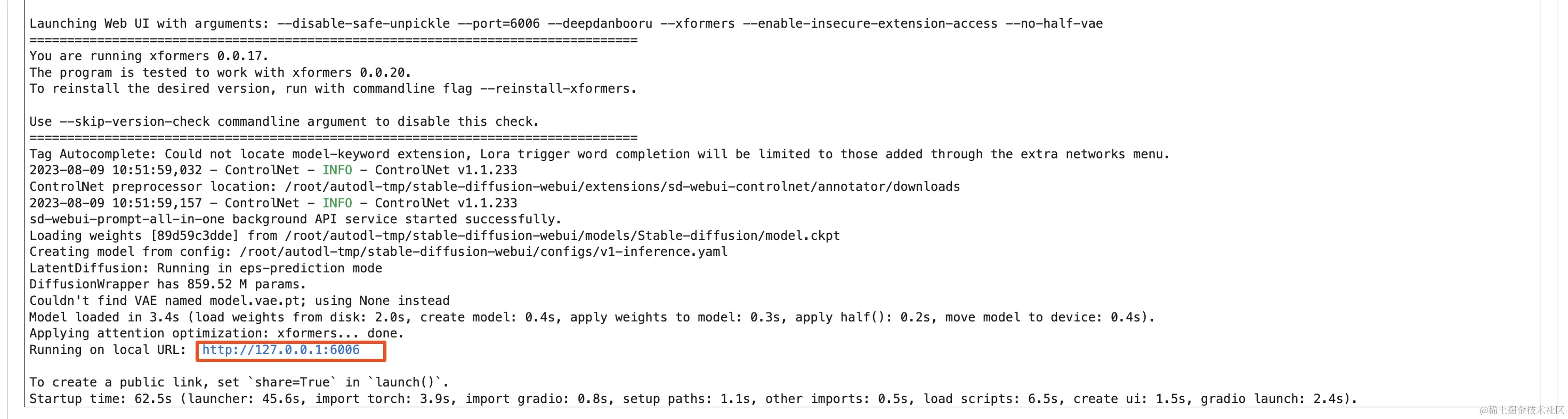 12、当看到蓝色的URL时,则表示运行成功了,然后返回AutoDL下自己的服务器