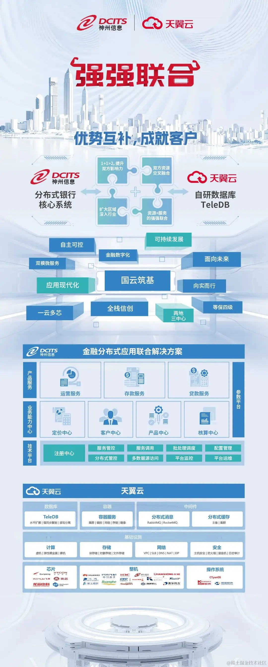 核心业务系统作为银行重要的业务生产系统,是金融科技建设领域的制高点。本次天翼云与神州信息核心银行系统的全面适配,标志着天翼云向金融核心领域又迈出了关键的一步,也标志着神州信息的国产数据库适配版图增加了浓墨重彩的一笔!