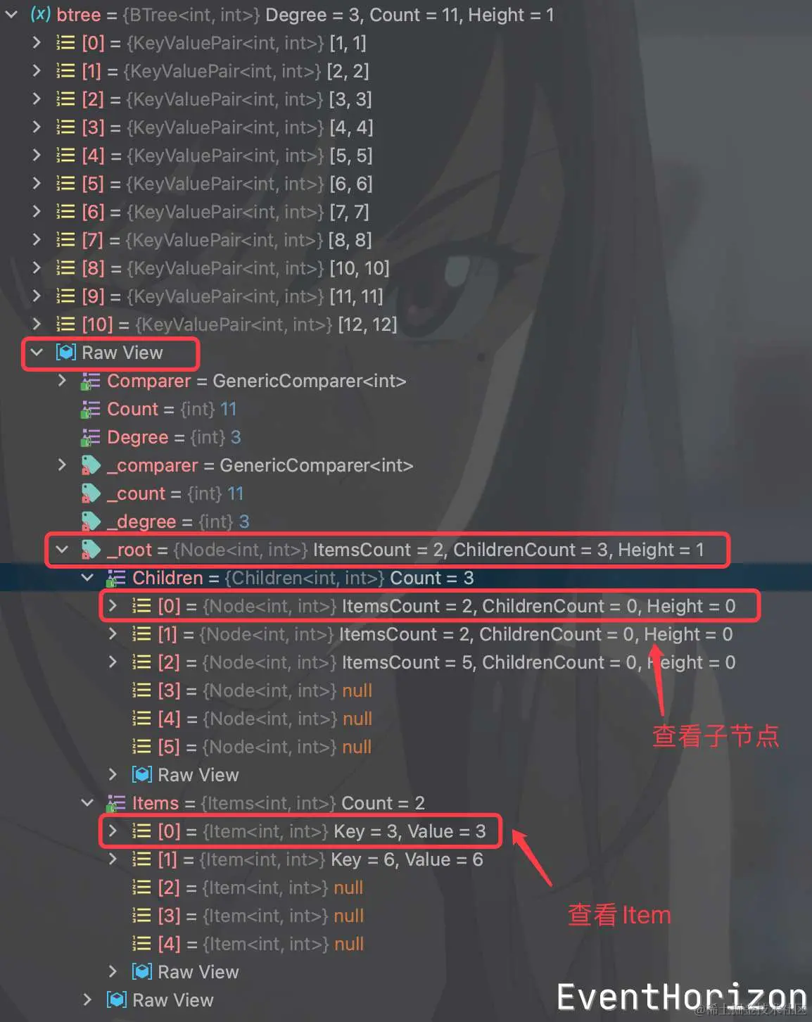 完整代码中包含了debug辅助代码,可以通过调试来了解B树的内部结构。