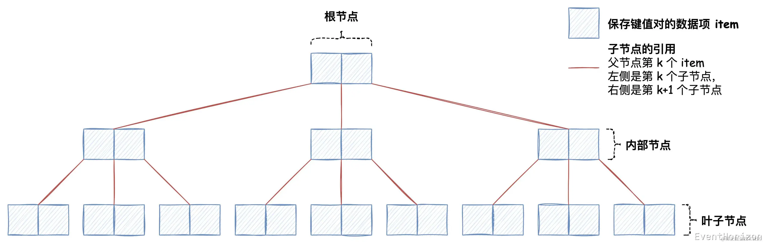 - 阶(order):通常简写为 m,m 代表 item 数量上限。