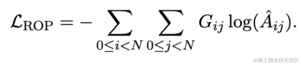 序列化结果由多个文本片段组成,包括一系列单词和2D坐标。该论文提出了阅读顺序预测(ROP),希望注意力矩阵Â携带有关阅读顺序的知识。赋予了Âij额外的含义,即第i个标记的下一个标记是第j个标记的概率。此外,真值矩阵G(就是标注)是一个0-1矩阵,其中1表示两个标记之间存在阅读顺序关系,反之亦然。Loss用交叉熵计算,把attention赋予token j是否是i的下一个阅读顺序。标签是 0-1 矩阵G, 1 为两个token是阅读顺序,反之则为0。
