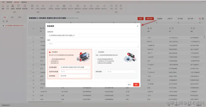 在开始模型训练之前用户可以自由配置建模流程中的各个环节,如图8所示,点击配置按钮,即可进入向导式建模的流程配置。