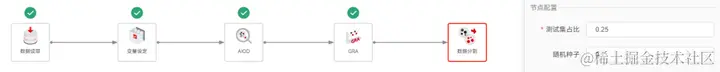 点击开始,数据分割节点将原始数据集随机分割为训练集与测试集,具体分割比例可在节点配置中调整,如图15所示。