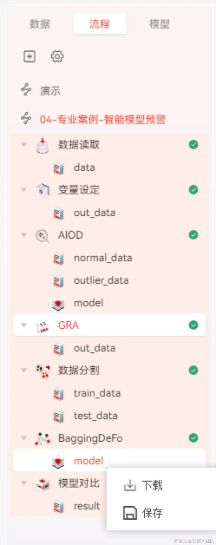 当确认得到满意的模型训练效果后,可以通过在资源树的模型上点击鼠标右键下载至本地磁盘中,如图21所示。