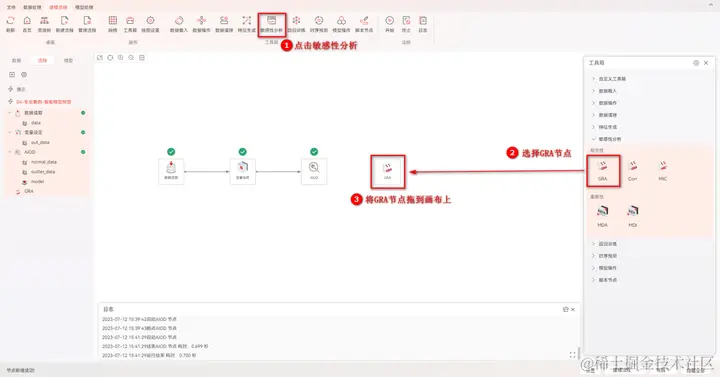 将工具箱切换至敏感性分析,从中将GRA节点拖拽至画布中,并连接AIOD节点,如图12所示。