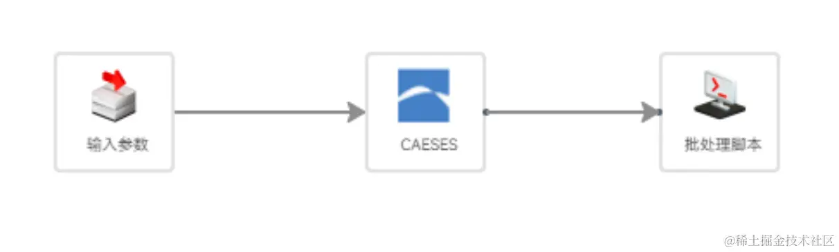 由图2可知,TCAE节点需要对CAESES节点输出的模型文件进行仿真计算,因此CAESES节点与TCAE节点之间存在文件的传递,需要将CAESES节点与TCAE节点相连接,如图11所示。