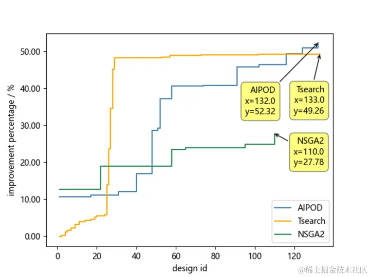 AIPOD与市面上常见的算法的优化历程如图28所示,结果表明,竞品算法在优化潜力表现上明显落后于AIPOD,且bound-break能够更好的辅助设计人员找到被忽略的高效设计区域。