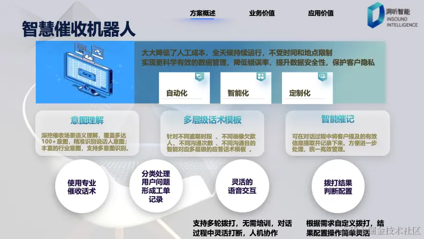 2. 智能化:机器人采用智能算法和意图识别,可以识别债务人的情绪和风险等级,有针对性地应对不同情况。