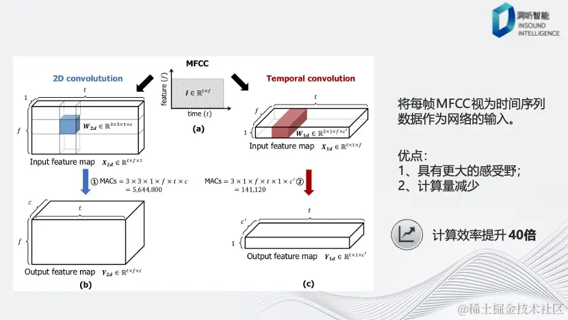 关键词识别将每帧的MFCC特征作为时间序列输入到网络中。这种方法具有明显的优点,原始的3×3卷积内核转变成了3×1的卷积内核,这一变化使计算量提升了40倍。