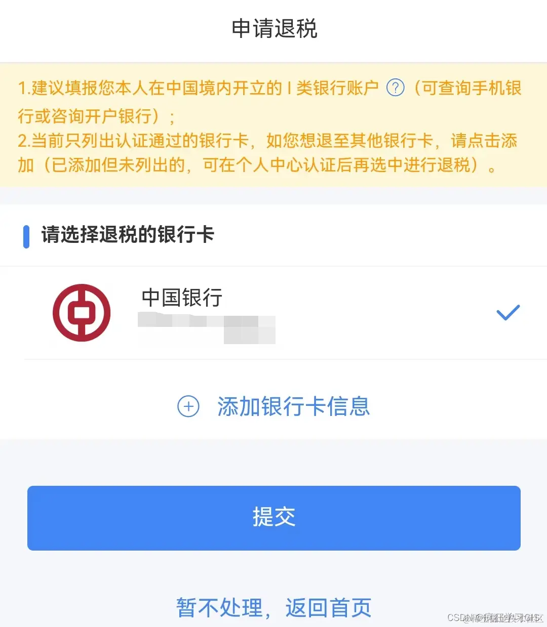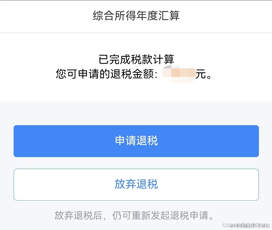 以上,即可完成退税的具体操作。我这里是以研究生的视角来介绍退税的具体流程的,但是无论大家的行业,其实整体流程都比较类似。对于研究生而言,大家大概率是会得到退税的结果;但如果大家是在单位上班,有较高的固定收入,通过上述流程后有时或许发现还需要补税。