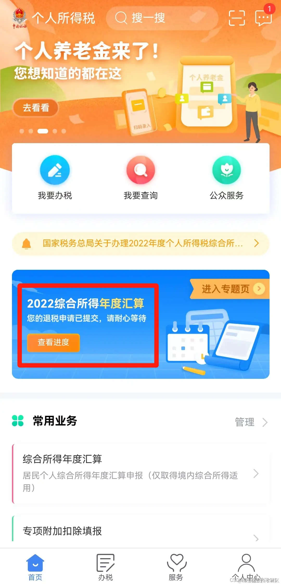 接下来,我们再到软件首页的“2022综合所得年度汇算”中,即可查看退税的流程。