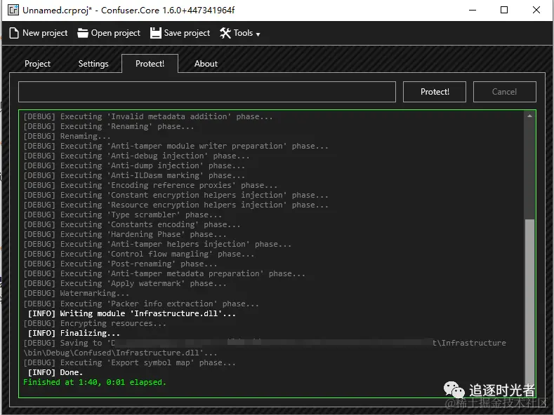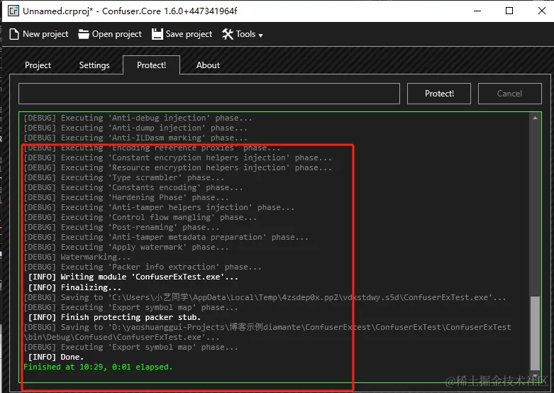 点击【Protect!】,就开始混淆了,Finished代表混淆完成并成功。