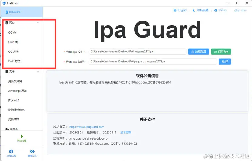 无论是加密还是运行时虚拟机,最后都可以通过执行时调试把代码反向生成出来原来的代码,虽然能抵御低端的黑客攻击,但是对高端黑客却形同虚设。 代码混淆是通过修改源代码结构和变量名,使得代码难以被理解和反编译。这可以黑客获取应用程序的代码,也会很难理解它,不管他是高端还是低端的黑客,目前都没有有效的方法来还原为原来的代码,是公认的非常有效的方法之一。下面以ipaguard为例子介绍怎么对ipa文件中的类、方法、方法参数、变量等进行全面修改混淆,使其名称成为没有意义的乱码,极大地增加应用破解的难度。ipaguard代码混淆工具支持对OC、Swift、Flutter、H5、HBuilder、Unity3D、Cocos2dx等各种开发平台开发的app。