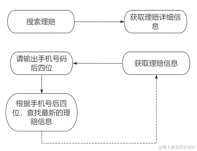在技术驱动的方法中,通常首先考虑的是所需的"理赔详细信息 API"。开发人员甚至可能会提到已经存在一个API,可以利用保单ID来获取详细信息。这是极好的!我们只需要用户提供1保单ID,就能获得所需信息。这种设计与目前通行的技术方法截然相反。