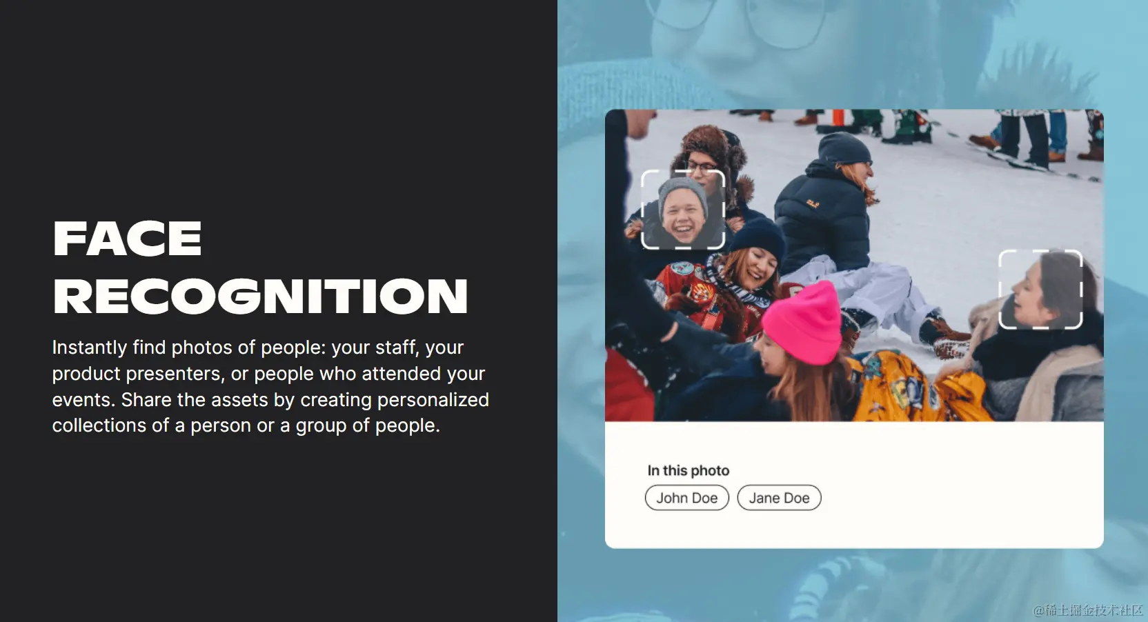 精准识别照片中的人,员工,产品发布者,出席会议的人。