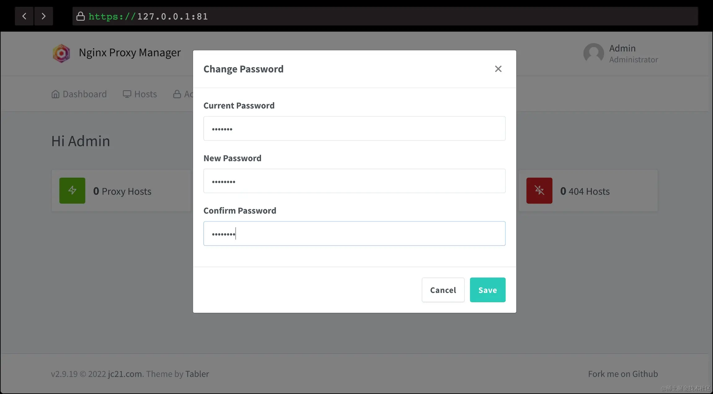 当你使用官方示例的docker-compose时需要注意,将image镜像jc21/nginx-proxy-manager替换为chishin/nginx-proxy-manager-zh即可实现中文部署